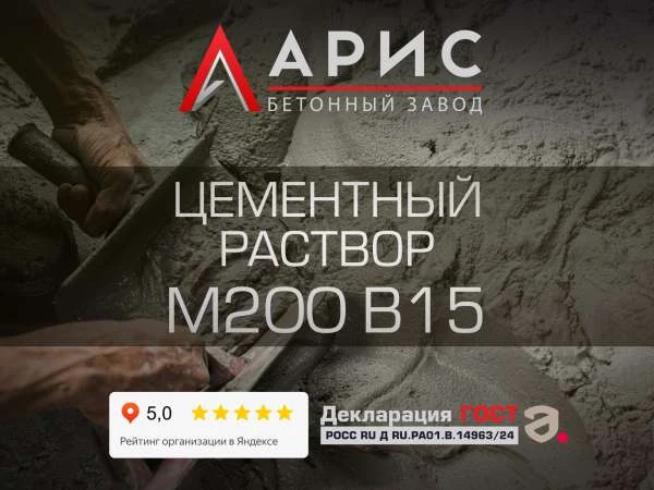 Цементный раствор М200 (B15) закупают, когда требуется усиленный по прочности слой и необходимо обеспечить одинаковые свойства материала на протяжении всей поставки, включая серию рейсов. Мы – производитель: «Арис» выпускает готовый раствор по гост 28013–98, оформляет паспорт качества и выполняет поставку в Наро-Фоминске. Поставка возможна от 1 м3, что позволяет купить объём под план производства работ без лишних остатков.