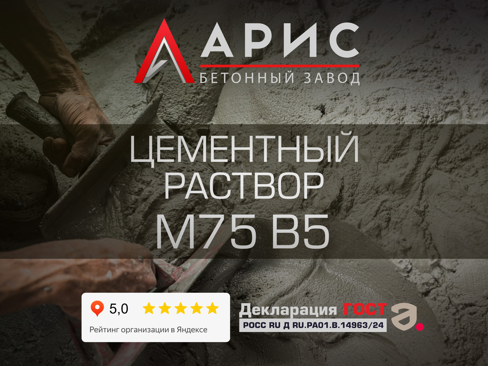 Раствор цементный М75 B5 по ГОСТ 28013–98 – выпуск на заводе «Арис» для Наро-Фоминске